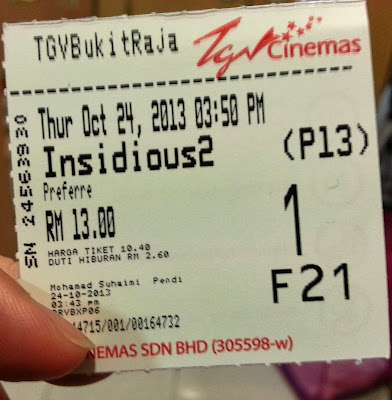 I was supposed to watch Insidious 2 on Tuesday, right? Guess what. They blew it off. Ugh. I skipped school because of that! Well, that was my excuse to skip school anyway but still... So I ended up watching just now alone. Sigh, umm. It was supposed to be with Mei Hua and Chi Yang. It was at 3.50pm in Jusco Bukit Raja. I ajak-ed them last night after Pio-loki tuition. Chi Yang said okay but Mei Hua needed to confirm with me the next morning. I prayed so hard that it would be good news but sadly, it didn't come out the way I hoped for of course. So, she couldn't come. I WhatsApp-ed Chi Yang after that to call it off. I wanted to go back to Plan A: Watching alone. Sigh, it's not what la but c'mon, I'd feel uncomfortable. I want to enjoy that movie, not sitting in the cinema thinking about how uneasy it is. I'd rather go alone. I didn't mean to hurt anyone okay...